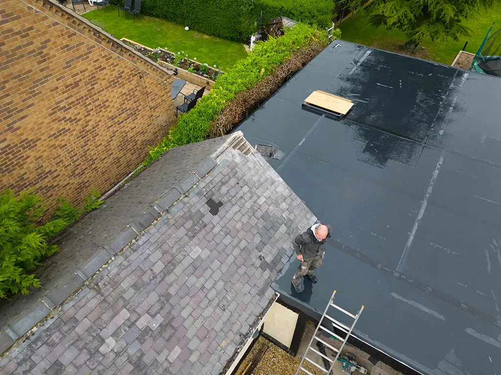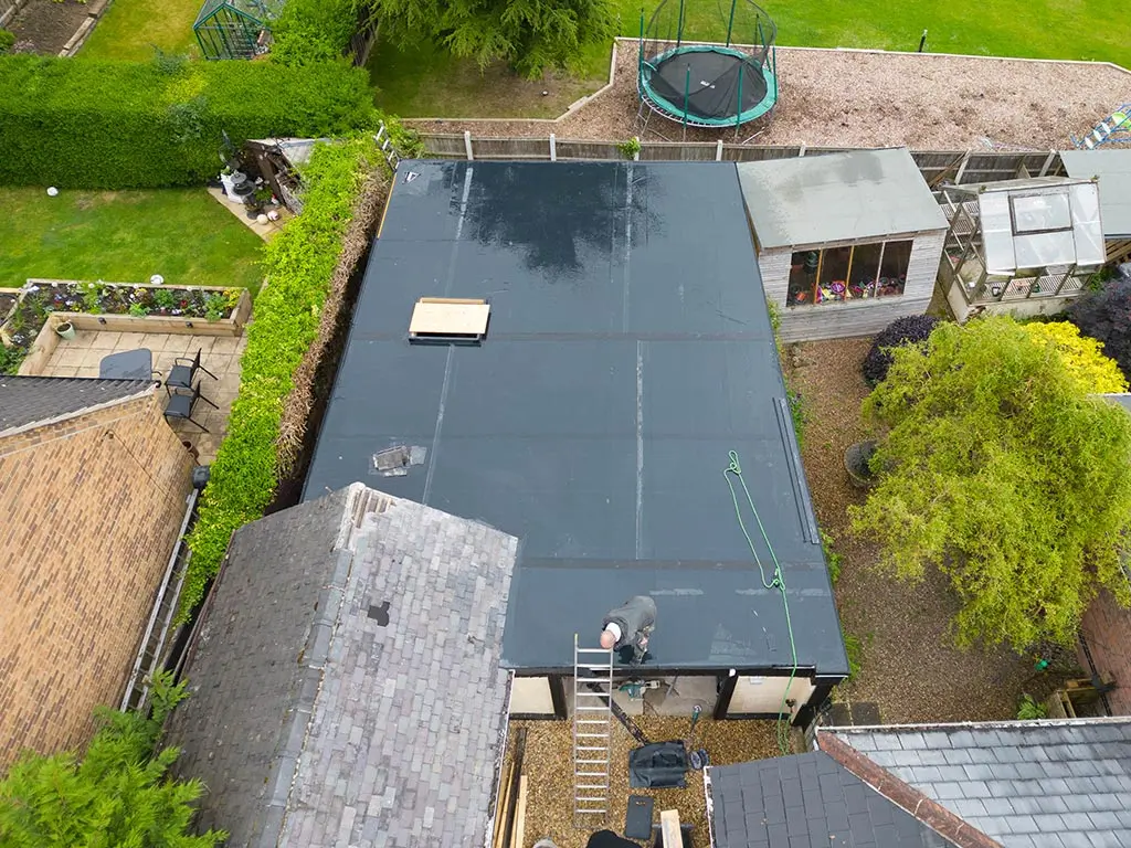 We can provide flat garage roof installations to residential and commercial clients throughout the East Midlands. The two roofing materials we’re proud to use, which are both highly effective at weather-proofing, are rubber EPDM and fibreglass.